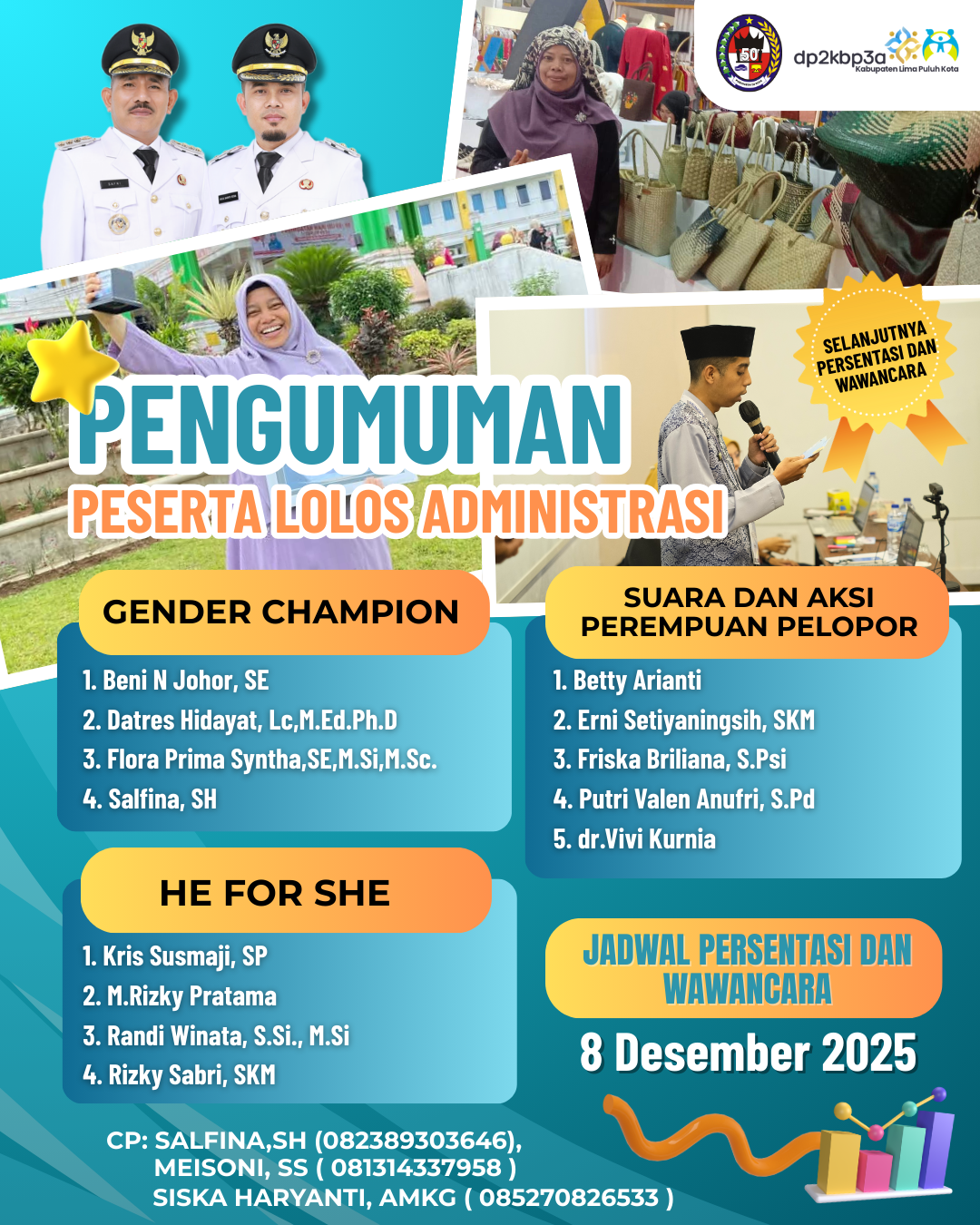Pegumuman Peserta Lolos Seleksi Administrasi Lomba Gender Champion....